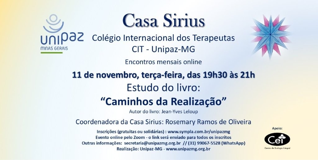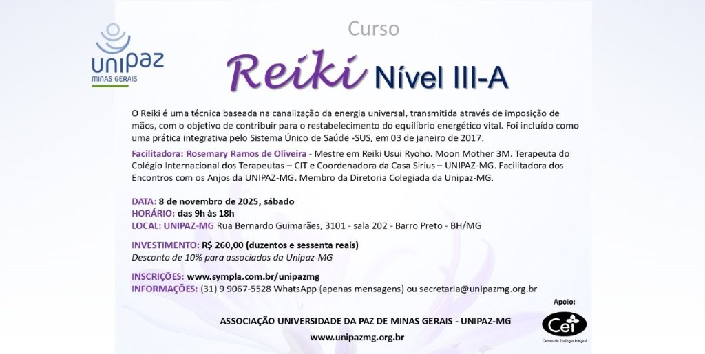 (31) 99067-5528 Informações: secretaria@unipazmg.org.br